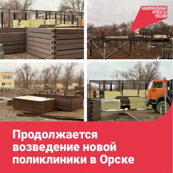 Строительство новой модульной поликлиники городской больницы Орска по адресу ул. Новосибирская, 117, активно продолжается. Этот важный объект возводится в рамках регионального проекта «Модернизация первичного звена здравоохранения», являющегося частью национального проекта «Продолжительная и активная жизнь».